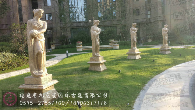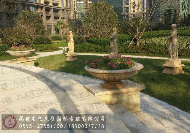 黃銹石花缽水缽人物雕塑住宅景觀雕塑案例