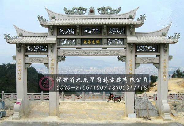 牌樓最早是由木門的演變而來的,是中國傳統建筑藝術的結晶,是裝飾效果極強的標志性建筑。現在石雕牌坊與石雕牌樓的名稱現在都在混用,但是在最初石雕牌坊和石雕牌樓在設計結構上是有很大的不同的。首先,石雕牌樓上面有一個斗拱和屋頂,它有更大的烘托氣氛。而石雕牌坊在設計結構上就比較簡單了,但是由于它們都是我國古代用于表彰、紀念、裝飾、標識和導向的一種建筑物,而且又多建于宮苑、寺觀、陵墓、祠堂、衙署和街道路口等地 方,再加上長期以來老百姓對“坊”、“樓”的概念不清,所以到最后兩者成為一個互通的稱謂了。