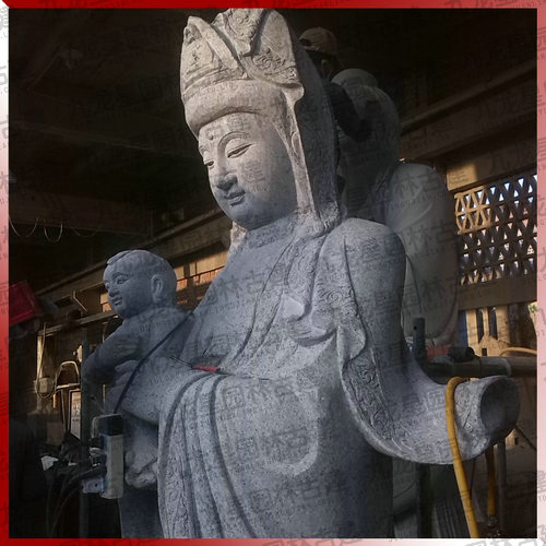 大型石雕送子觀音雕像生產(chǎn)加工中