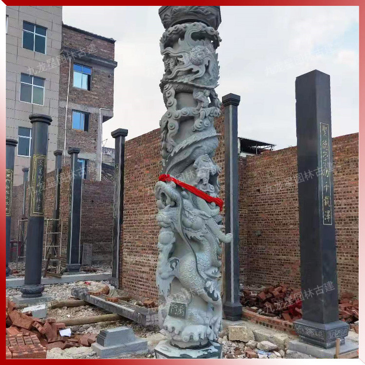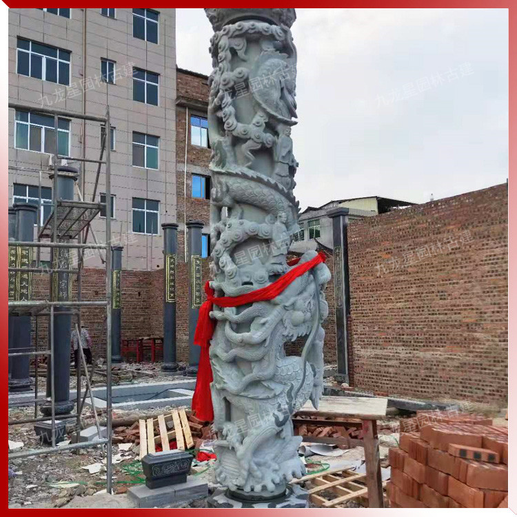 九龍星園林古建加工的古建裝飾用的石雕龍柱造型有單龍柱、雙龍柱、滾龍柱、盤龍柱、蟠龍柱、華表柱、龍鳳柱、八仙龍柱、青石龍柱等多種造型雕刻。我們通過專業且標準化的采購渠道,甄選優質的礦料,加工的惠安石雕龍柱,大批量應用于園林、寺廟、宗祠建筑裝飾美化,贏得客戶好評。